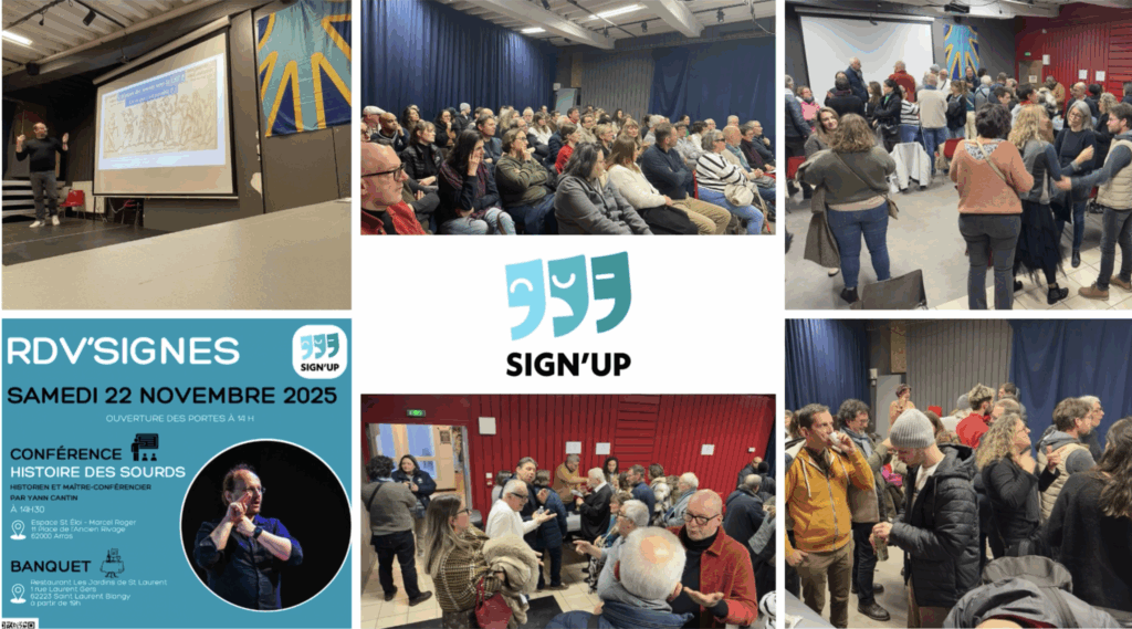 Tout d’abord le RDV’Signes sous forme de conférence intitulée « Histoire des Sourds » donnée par l’historien Yann Cantin. La conférence, les questions, les échanges étaient très enrichissants et intéressants.